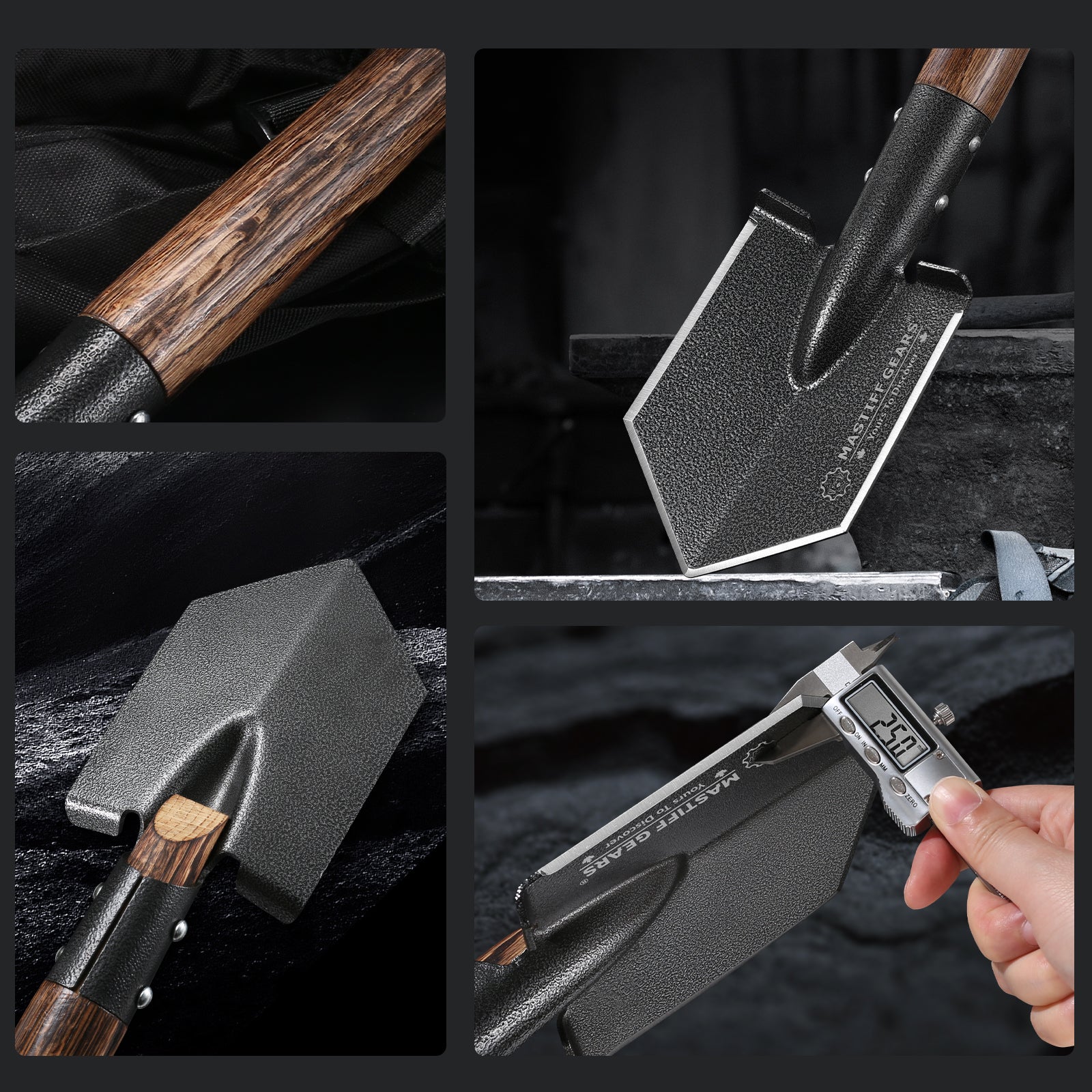 MASTIFF GEARS Tactical Survival Shovel - 48.5cm/19in, Axe/Machete Replacement, HRC 42-48 1050 Steel Spade, Hand-Carbonized Hardwood Handle & MOLLE Sheath for Camping Hiking Off-Roading Emergency